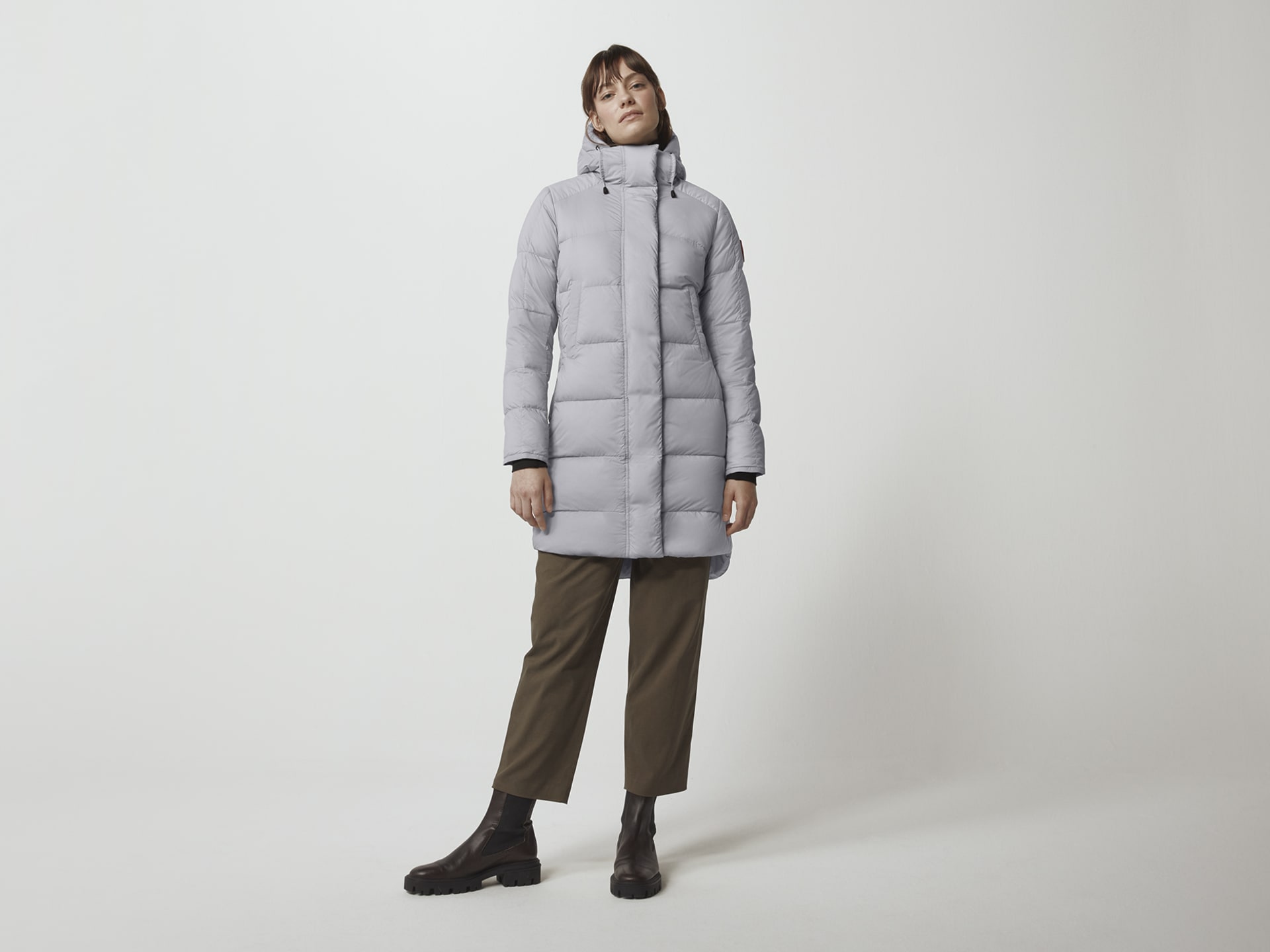 - 2-way adjustable down-filled hood adds warmth and element protection. Signature double-stripe reflective details at back for added visibility in low light \r\n\t