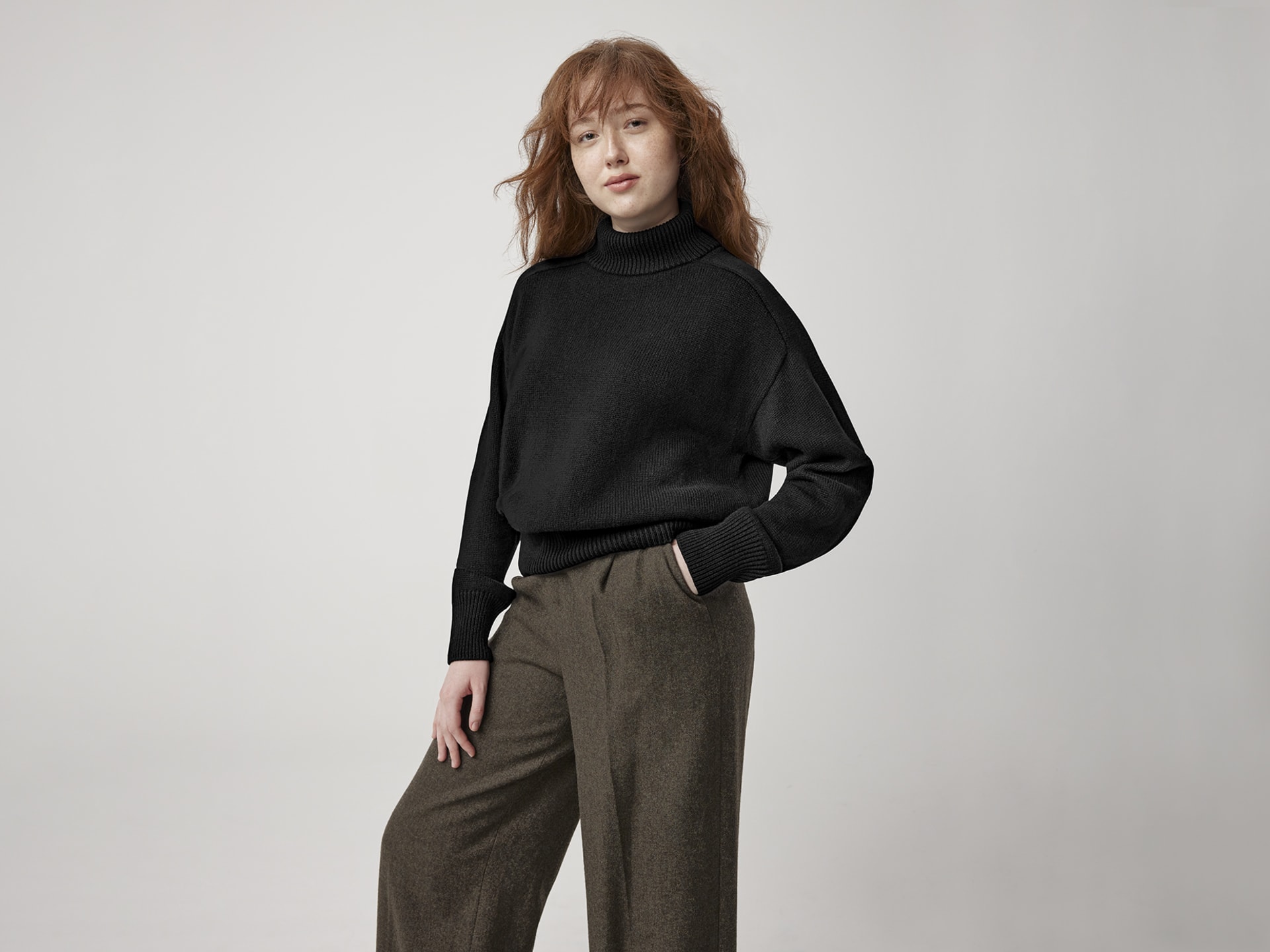 The Baysville Turtleneck is made with Superfine Merino Wool, super-soft and breathable yarn for ultimate termperature regulation. It has relaxed, dropped shoulders and is finished with a rib-knit high collar, cuffs and hem. The Baysville Turtleneck offers effortless sophistication on its own or layered during cooler weather.