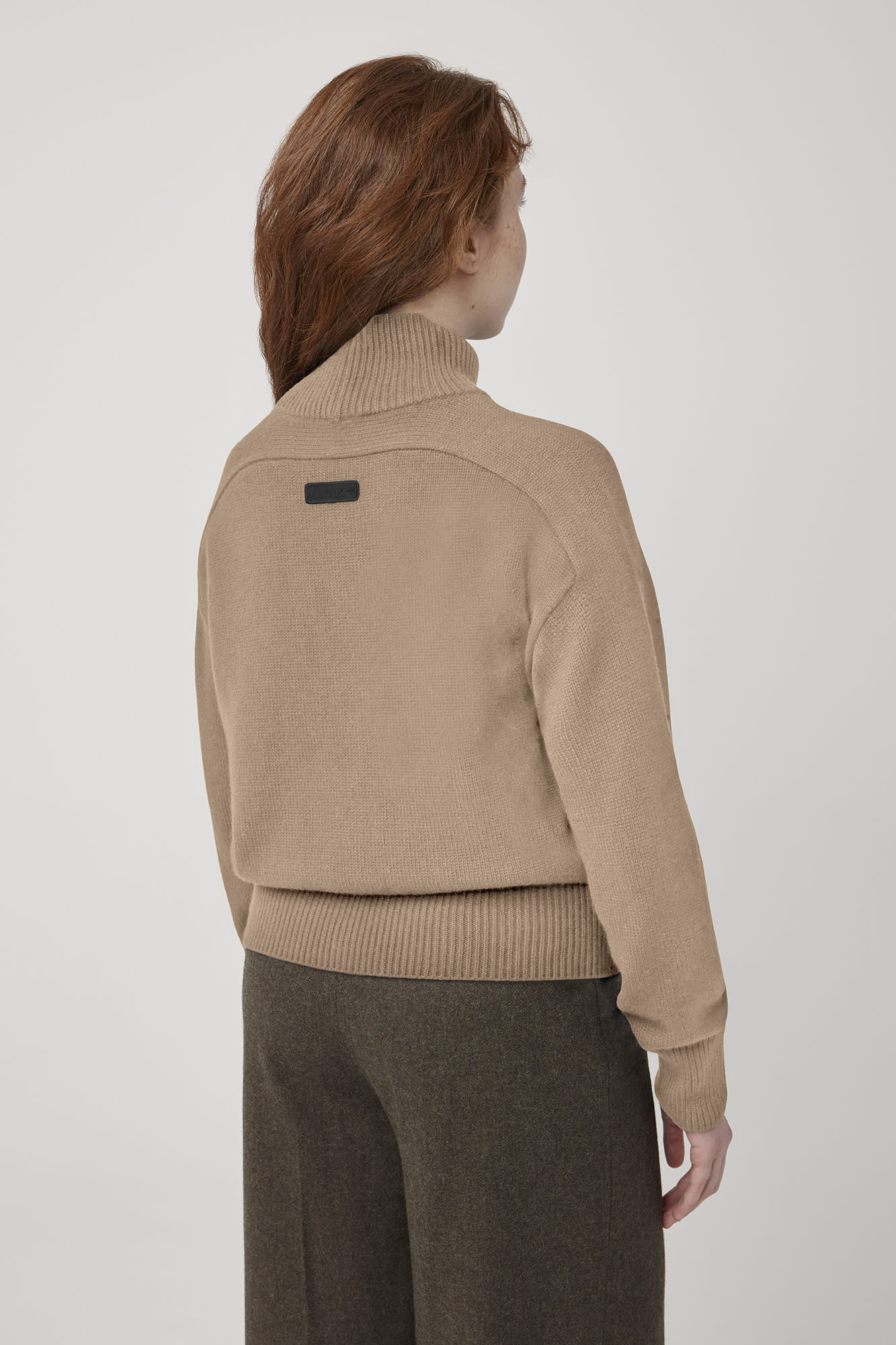 - Rib-knit high collar, cuffs and hem