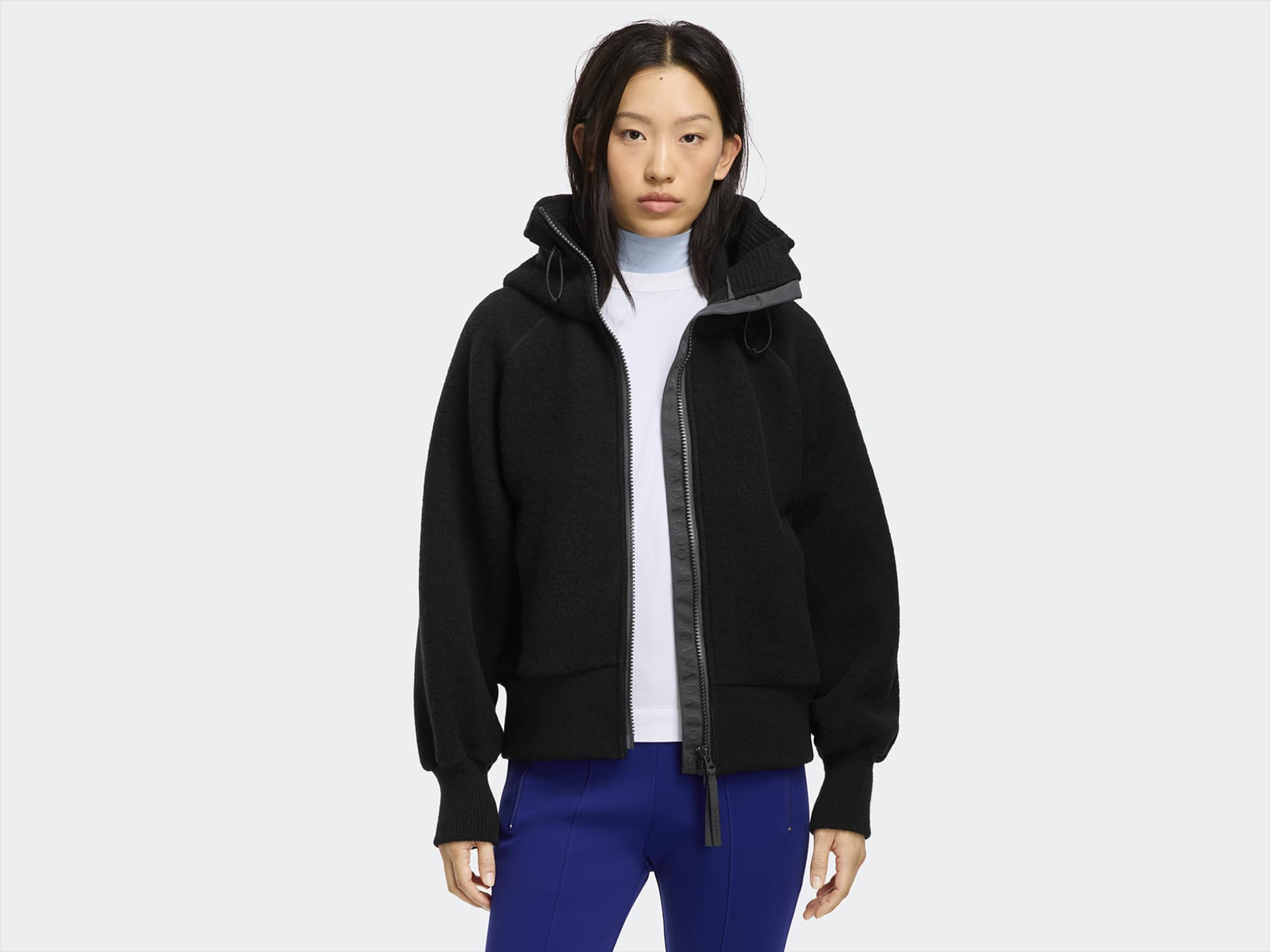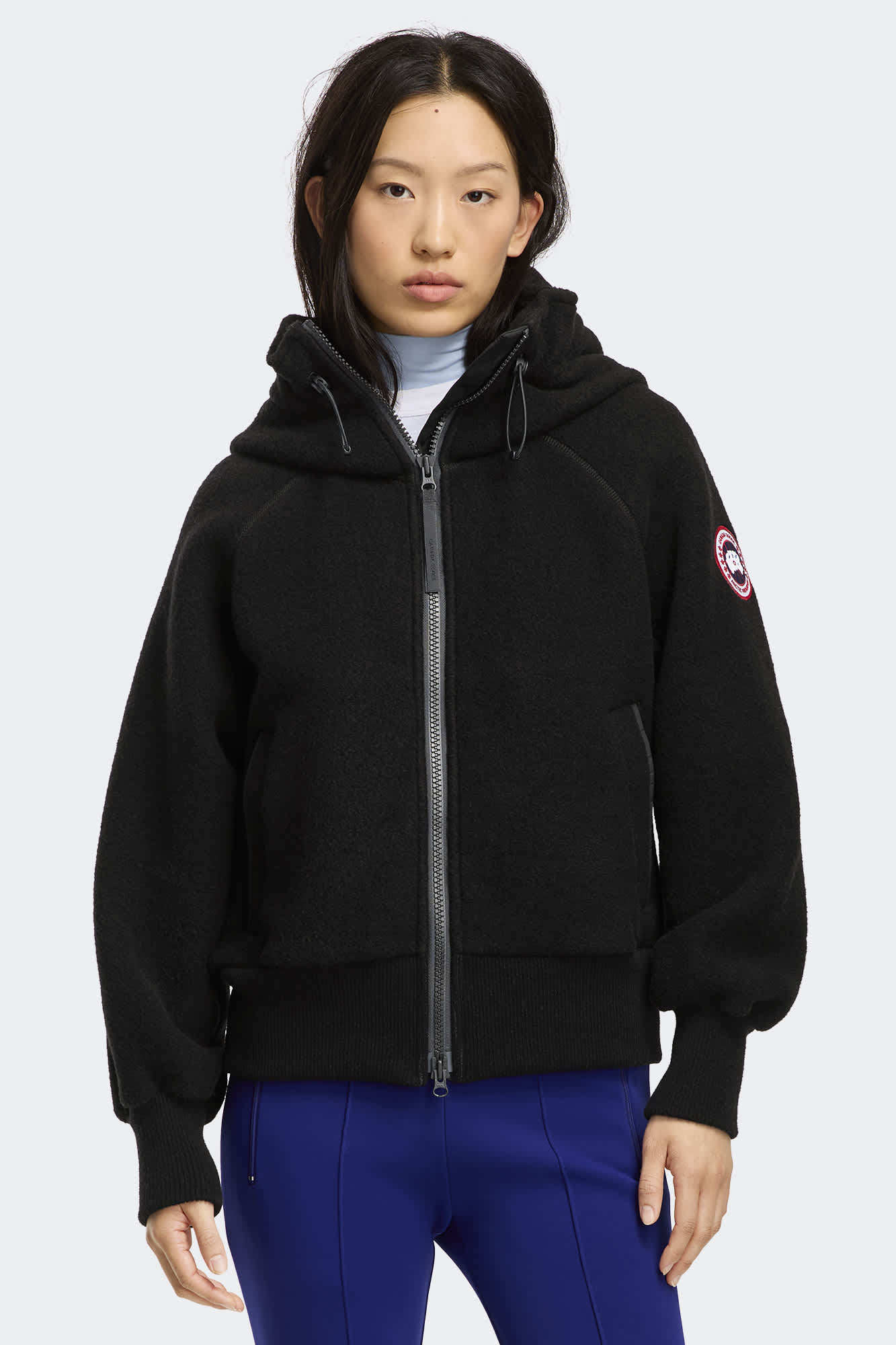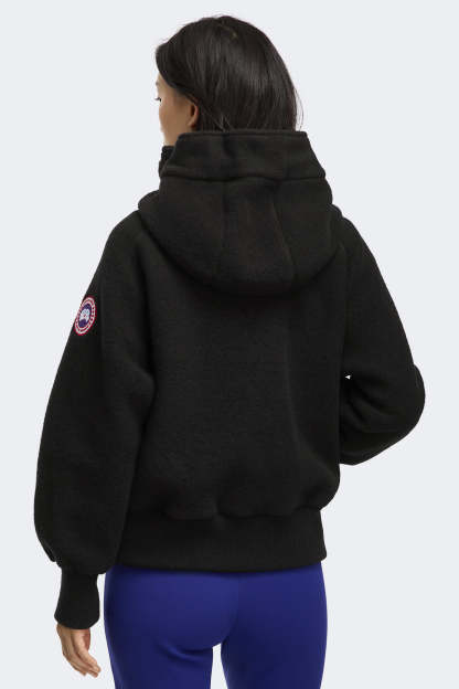 The Chilliwack Fleece Bomber is made with Kind Fleece—our next generation of\nfleece, made primarily of recycled wool and bio-based fibers to support our continued mission of reducing our impact on the planet. Transition through the seasons ready to face the elements in style with a large, adjustable snorkel hood, drawcord adjustments, and front wind guard. Articulated cuffs and rib-knit hem provide an enhanced fit.