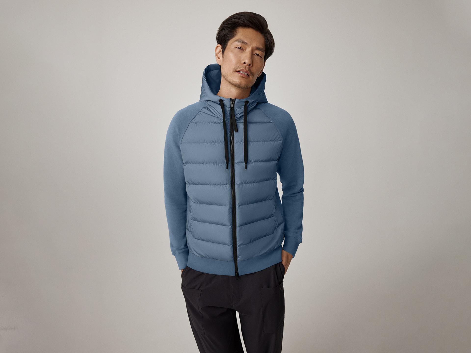The HyBridge? Huron Full Zip Hoody combines the breathability and softness of 100% cotton with the warmth of our tried-and-true HyBridge? family. Strategically placed down-fill around the core adds lightweight warmth where you need it most. Articulated rib-knit hem and cuffs lock in heat and the adjustable drawcord hood protects your face against the elements.