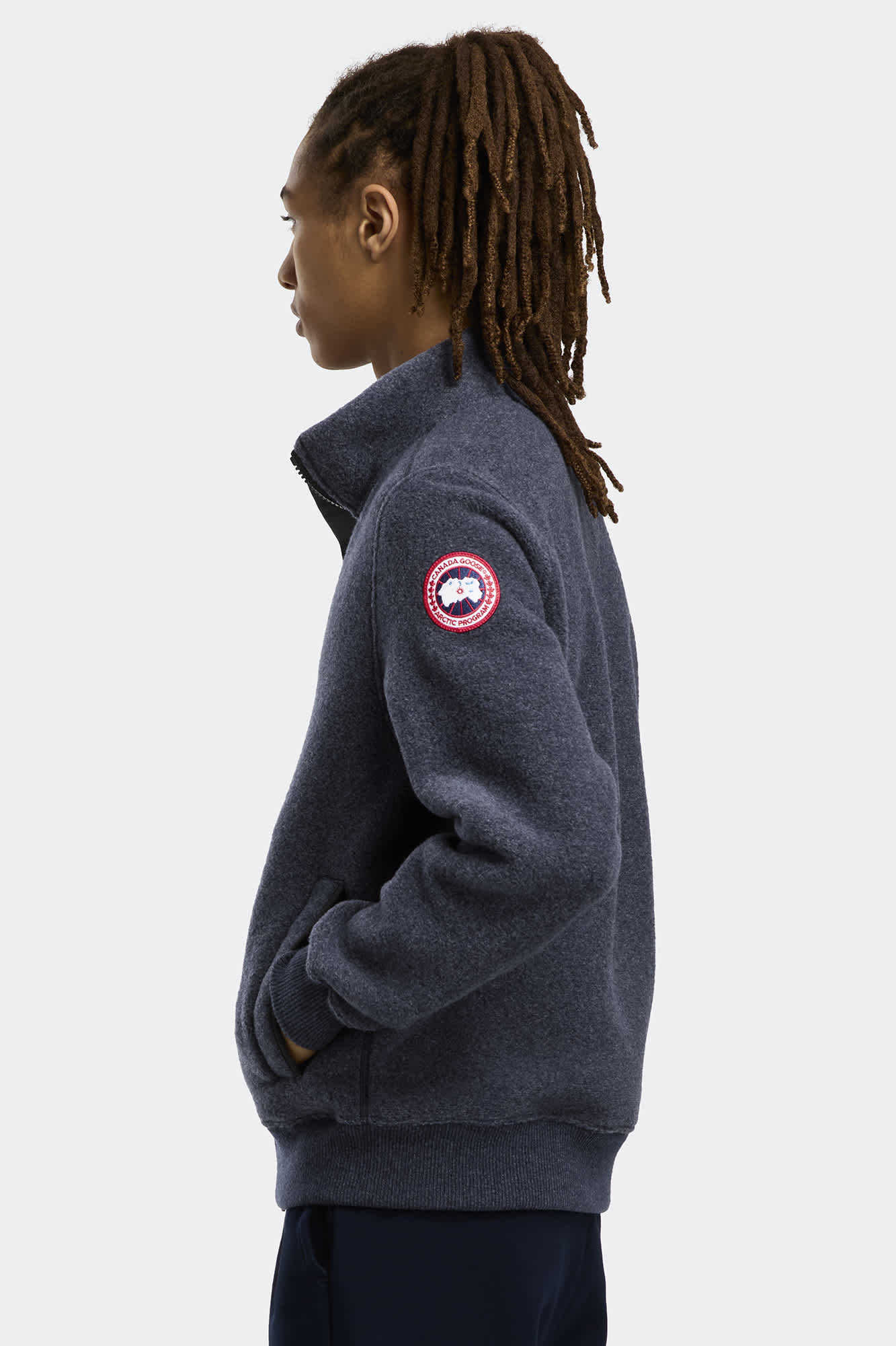 - Rib-knit hem and cuffs provide tailored fit