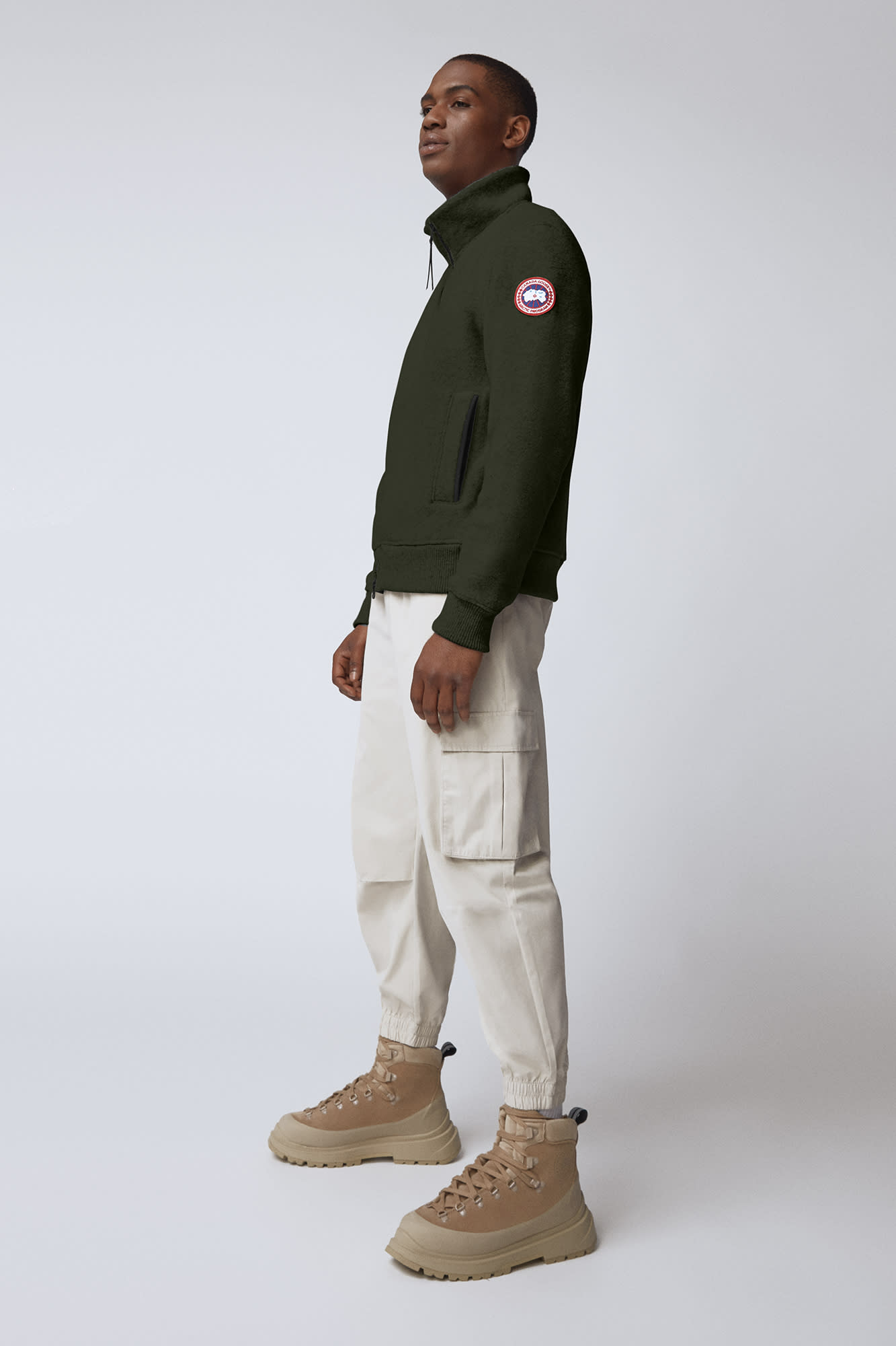 - Rib-knit hem and cuffs provide tailored fit