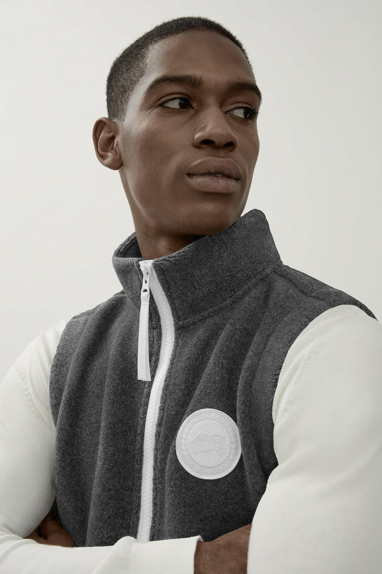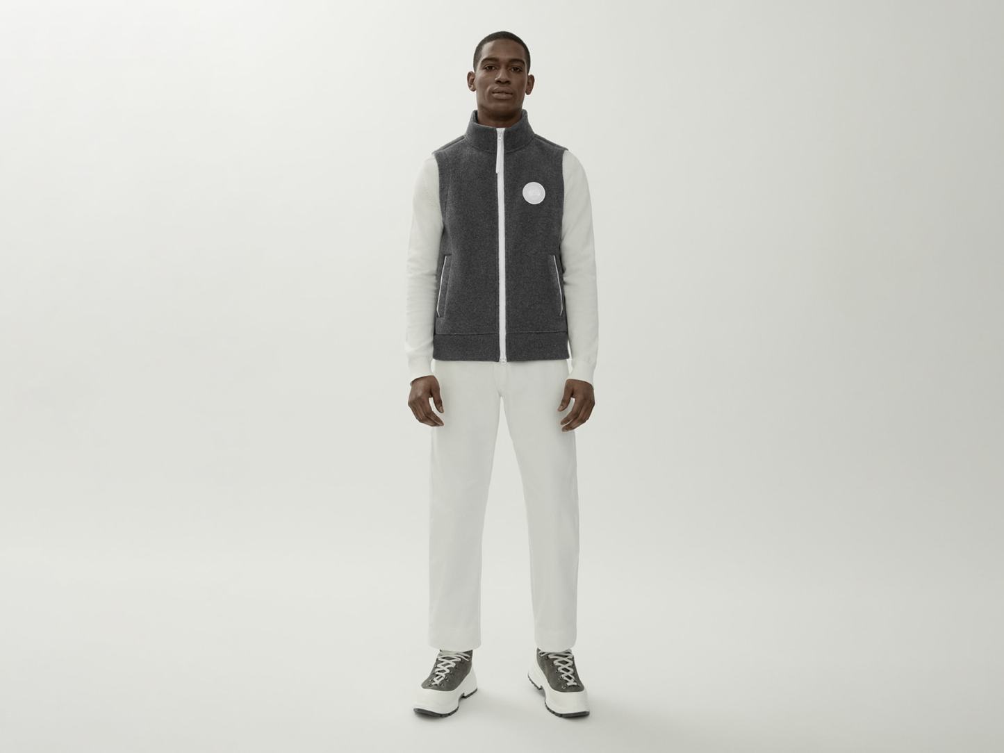 - Embroidered white Canada Goose logo on the left sleeve