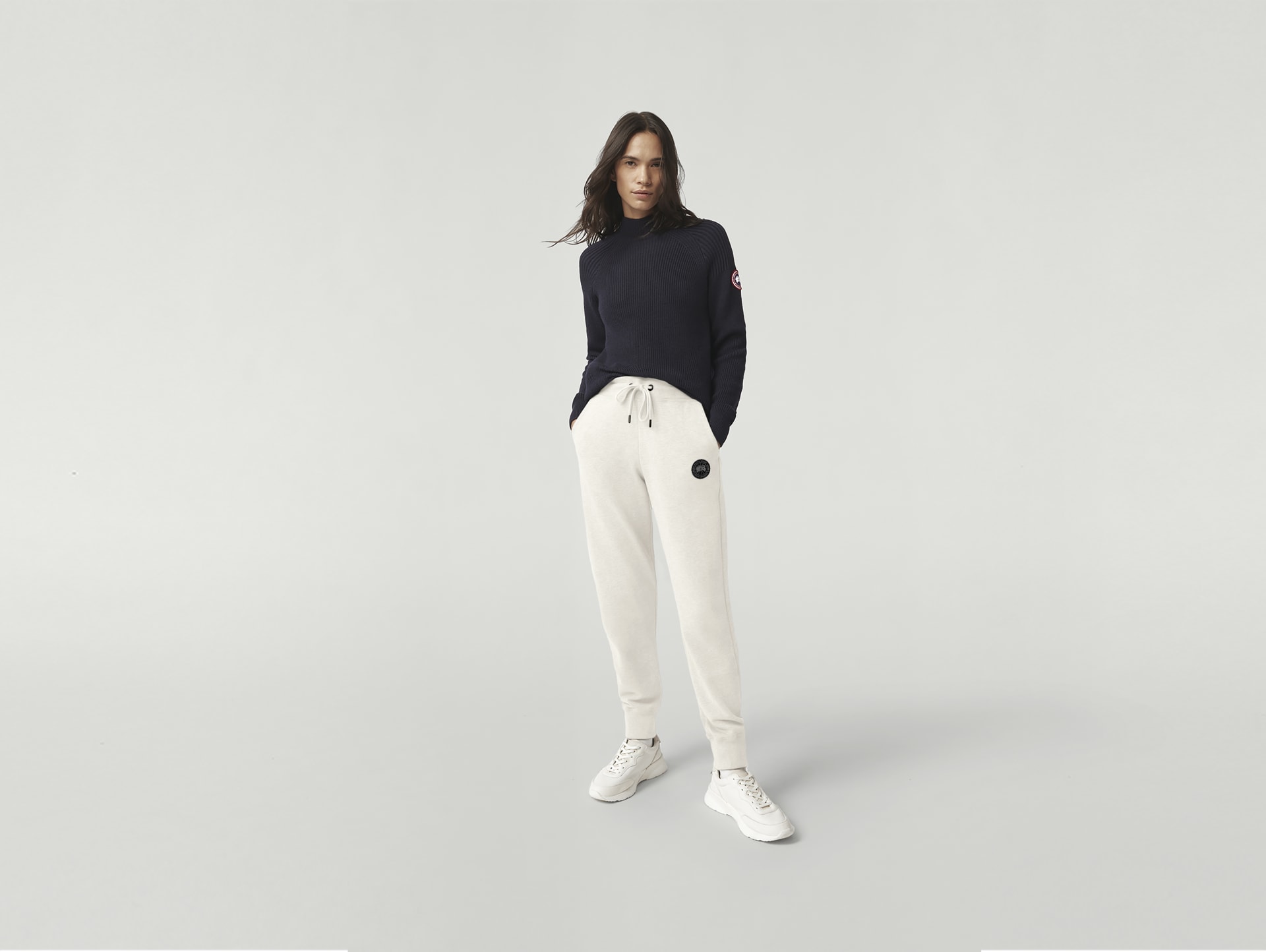Step into comfort with the Muskoka Pant. Made from 100% Cotton for softness and breathability, the pant features a rib-knit waist and cuffs for a tailored fit and added comfort. Canada Goose branded drawstring adjusts to fit.