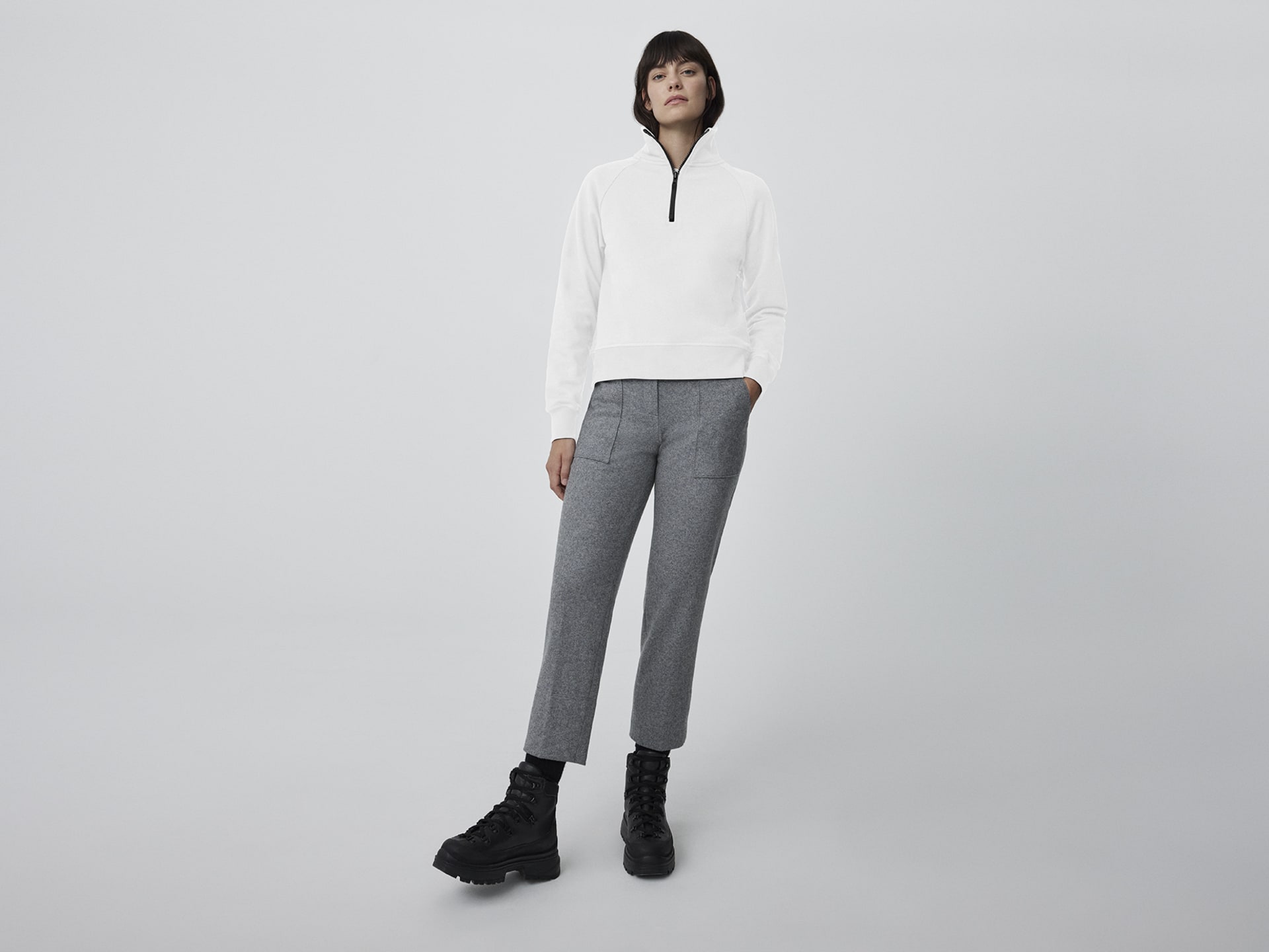 - Clean finish high collar with a 1/2 zipper