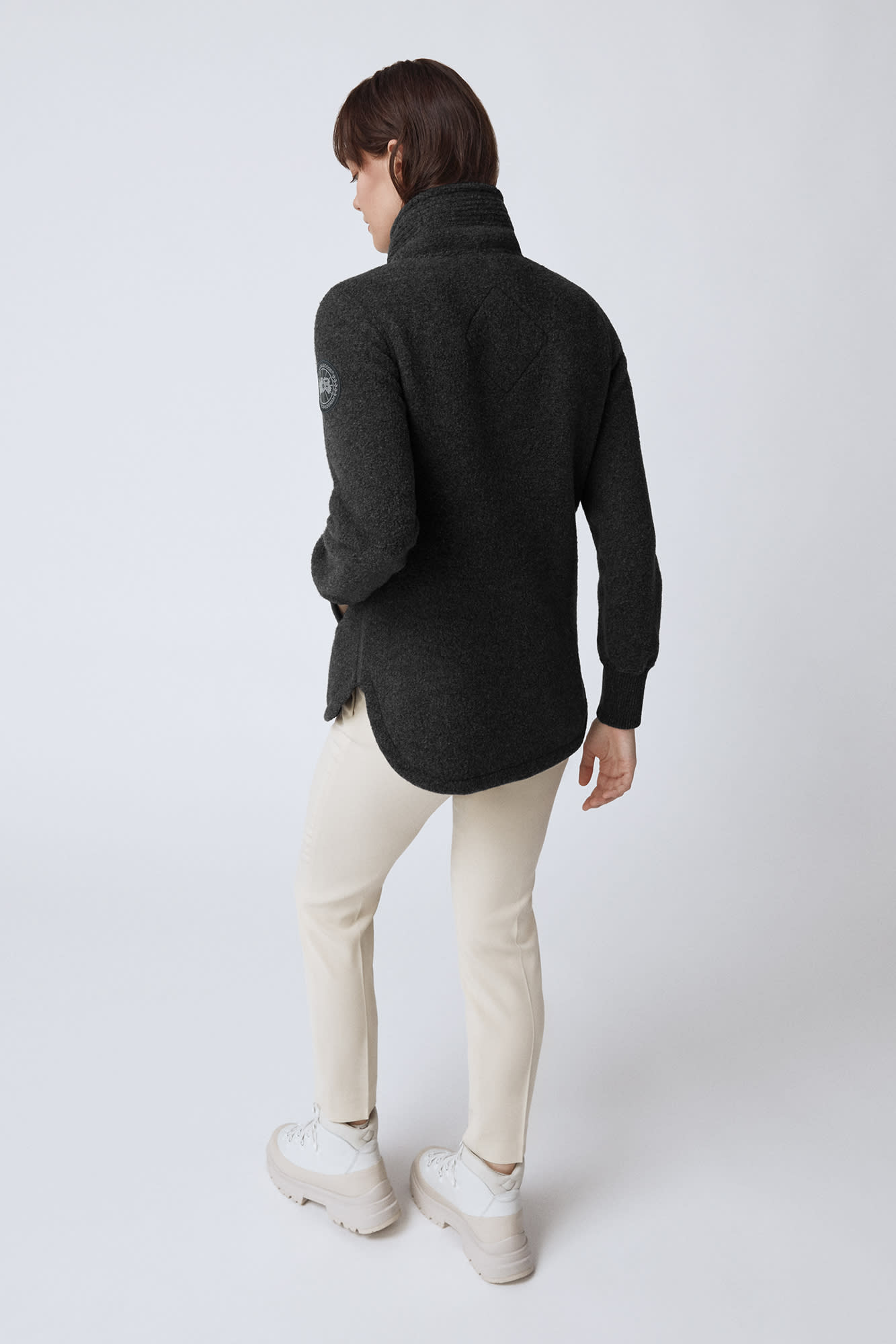 - Split hem that's longer at the back for ease of movement and added coverage