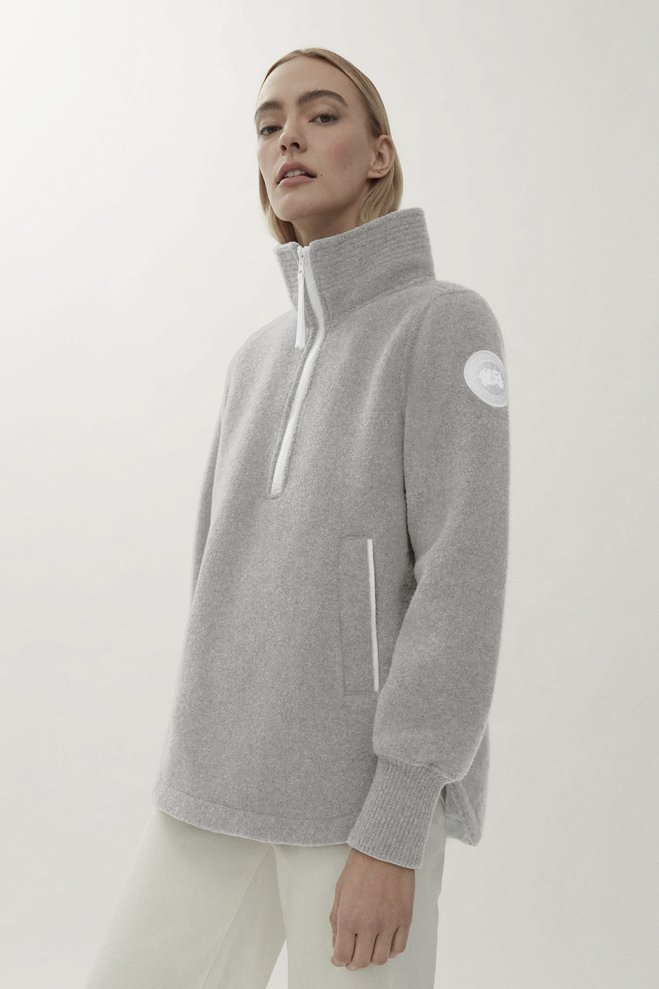 - Embroidered white Canada Goose logo on the left sleeve
